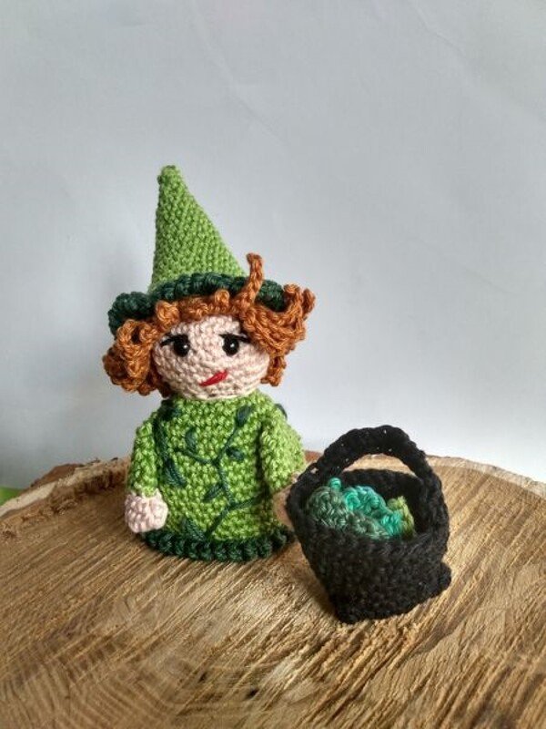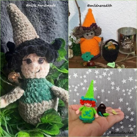 Dimensions: around 6cm diameter and 14 cm tall. (Be careful, if you‘re using a crochet hook in a different size, the witch will be bigger or smaller.)