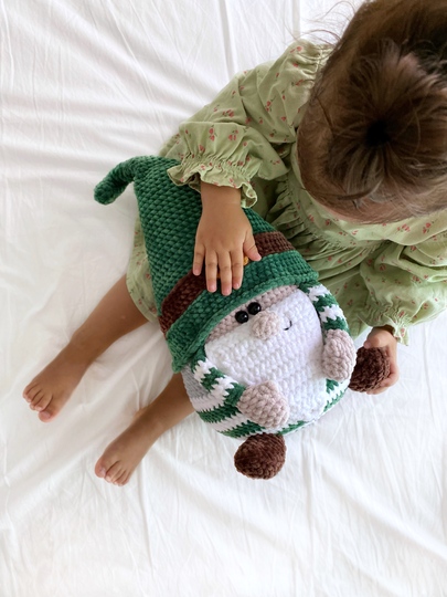 Easy crochet pattern of the cute plush Gnome pillow for Christmas decorations (PDF file).