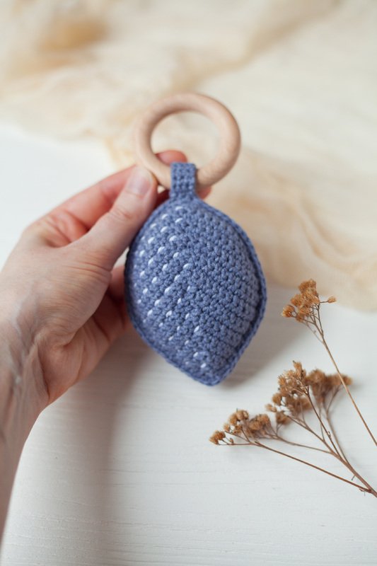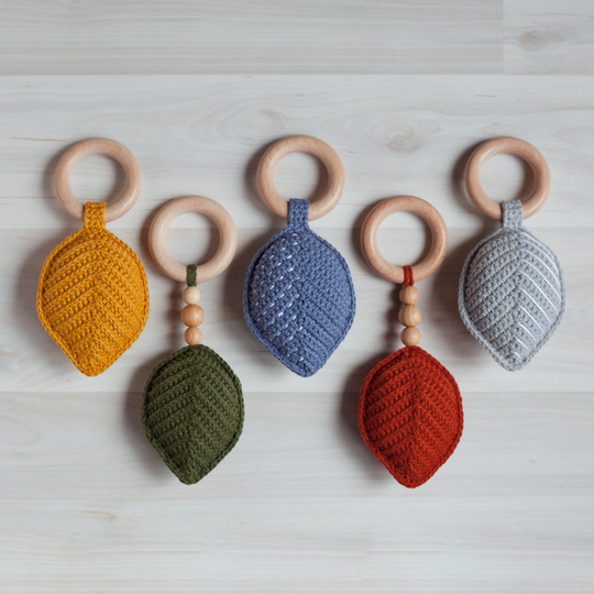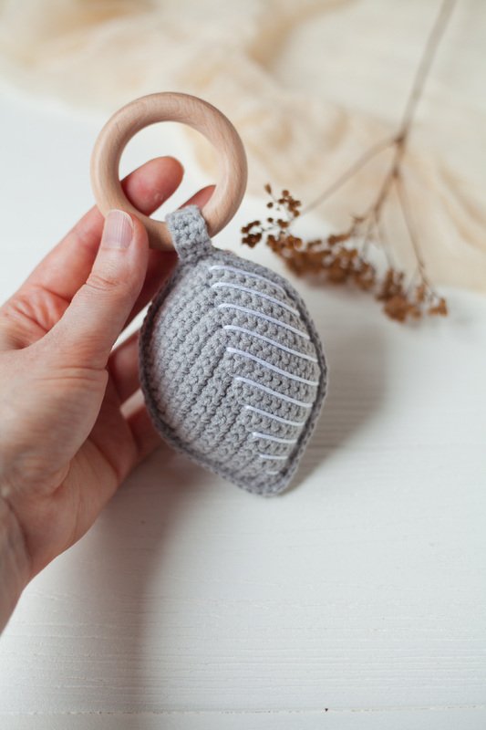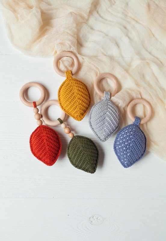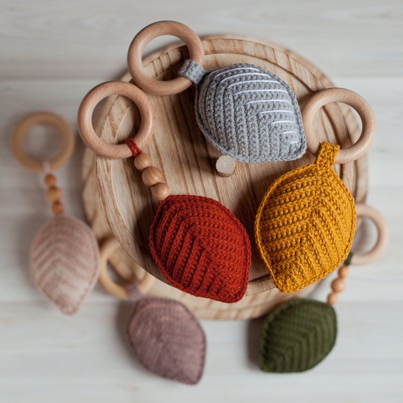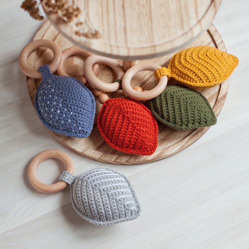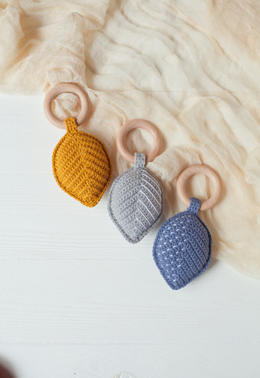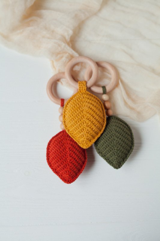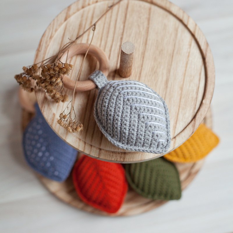 Simple and cute rattle pattern. Such a rattle will become a beautiful autumn nursery decor. Using this leaf baby rattle crochet pattern in English, you can crochet a rattle for your baby or grandchildren.