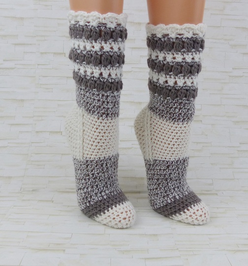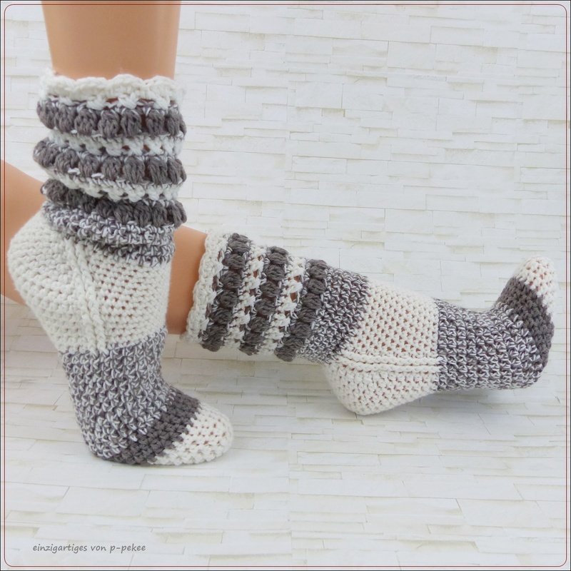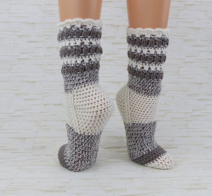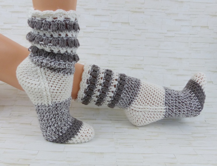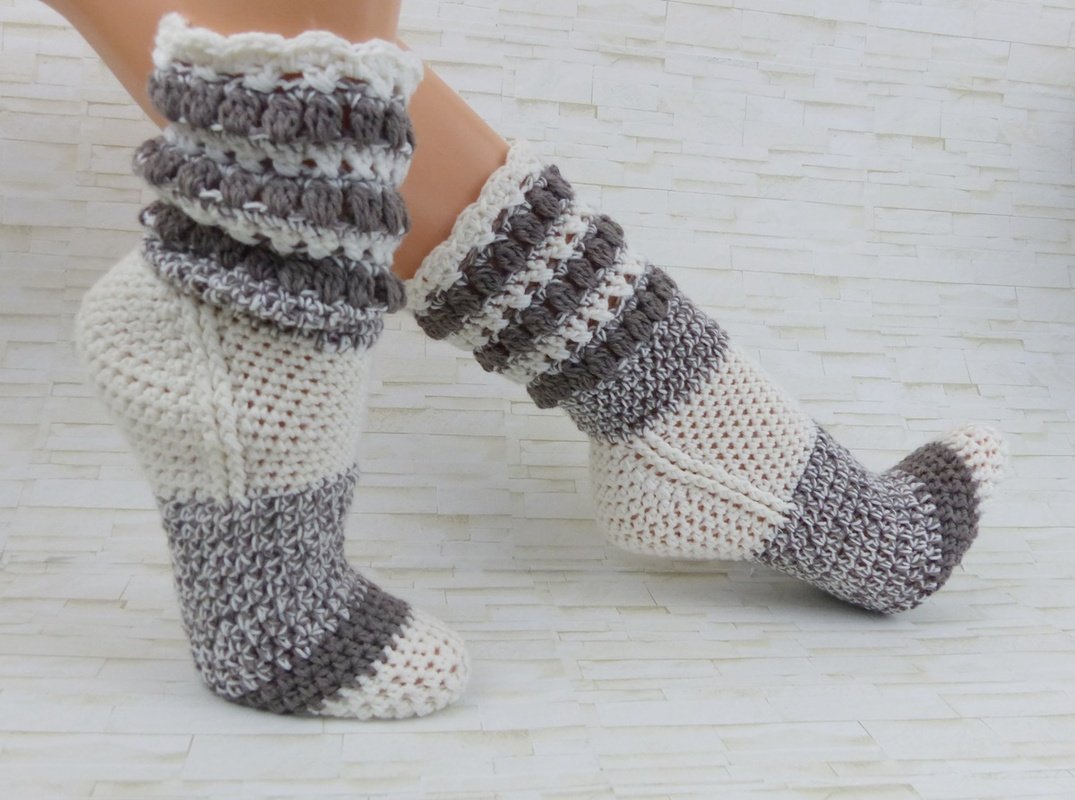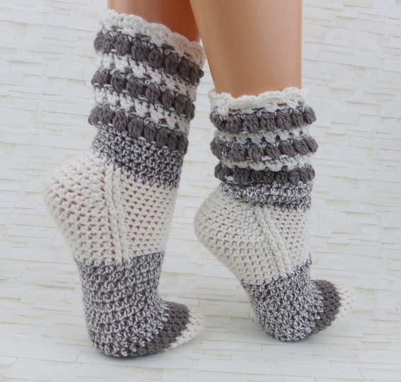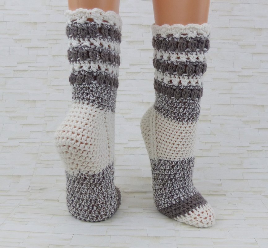 The socks are crocheted in rounds. The crocheted heel has an ideal fit and is very easy to crochet