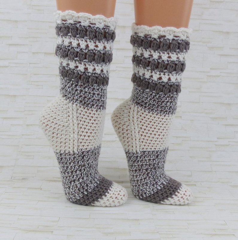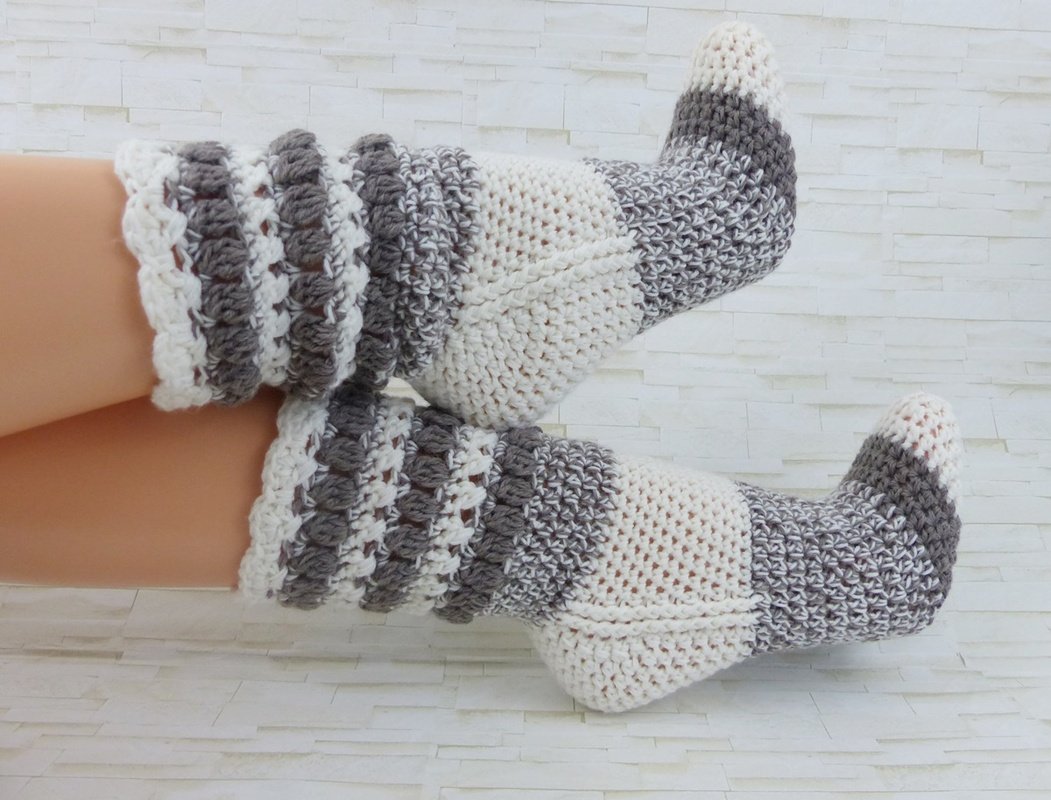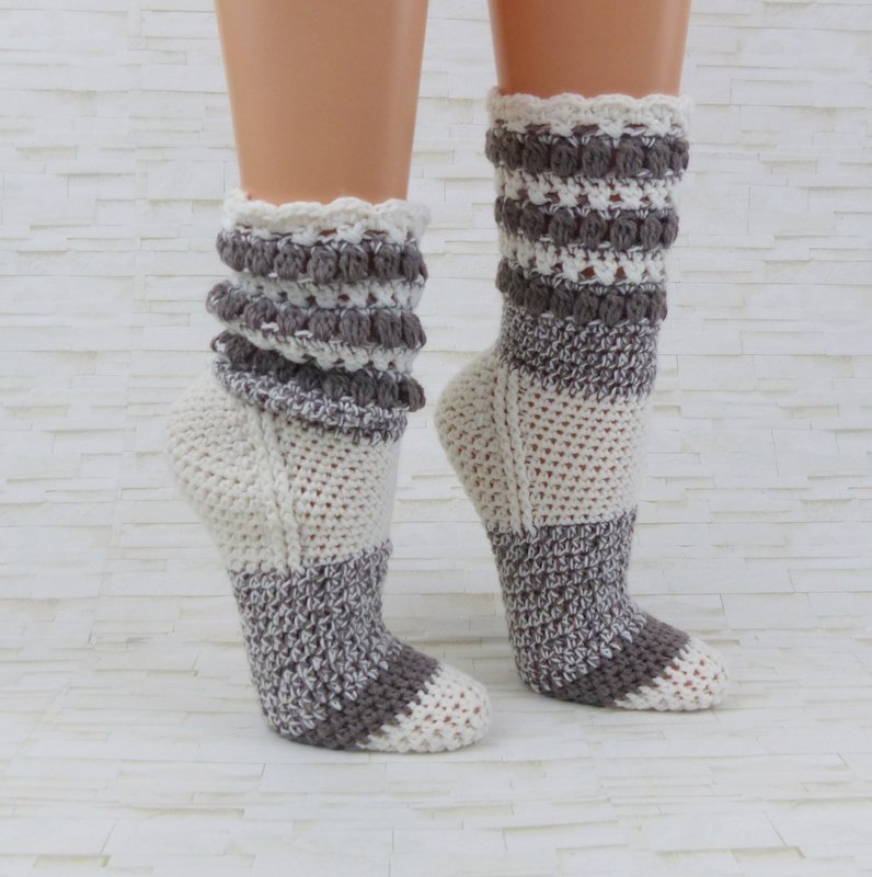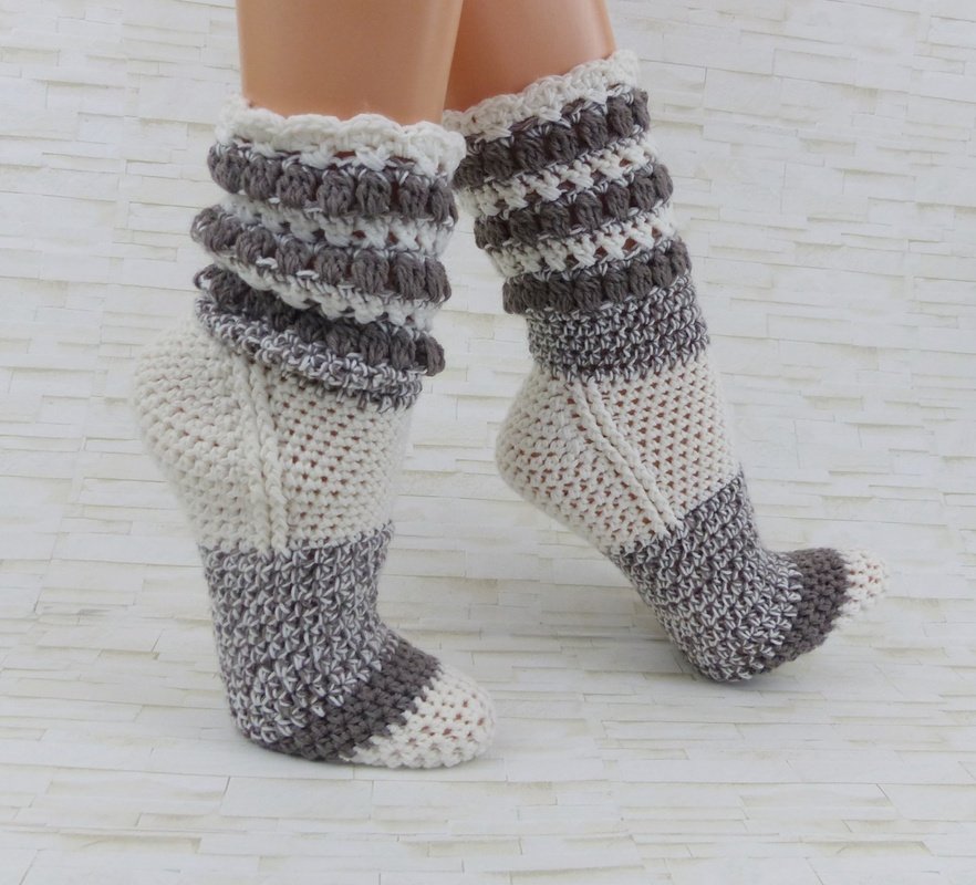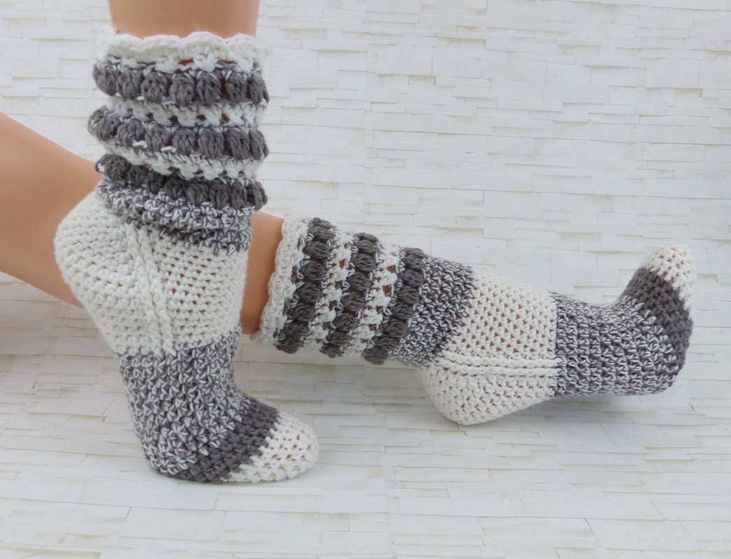 The socks are crocheted in rounds. The crocheted heel has an ideal fit and is very easy to crochet
