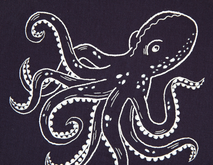 PDF Tutorial for this beautiful handmade embroidery. Textile art with maritime theme; octopus. Stitched with glow in the dark thread.