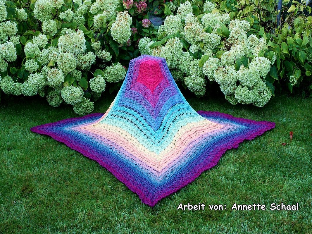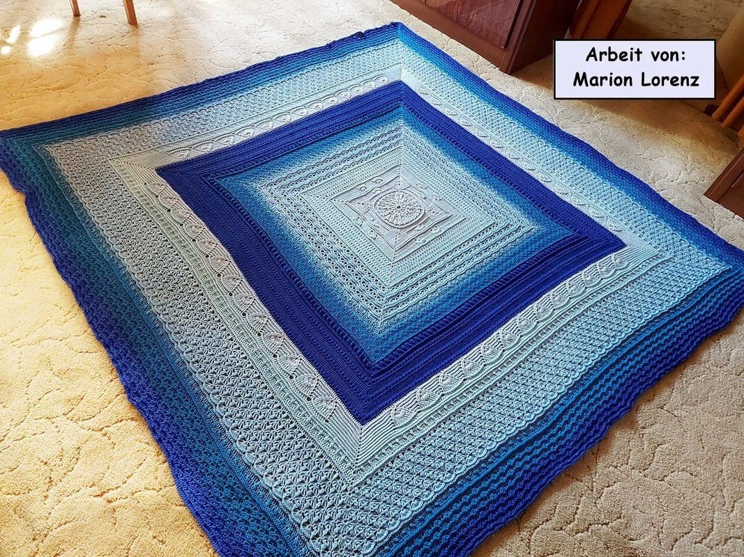 Diese wunderschöne, quadratische Decke wird komplett in Runden gearbeitet. Es ist also kein lästiges Wenden notwendig und somit ist sie perfekt für alle Farbverlaufsgarne geeignet.