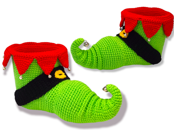 This guide explains step by step how to crochet the shoe. The pattern for the elf shoe consists of 14 pages and is provided with many pictures.