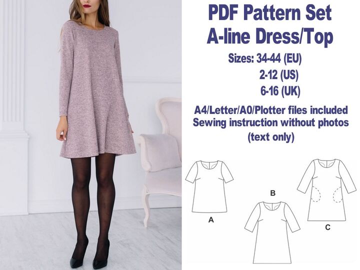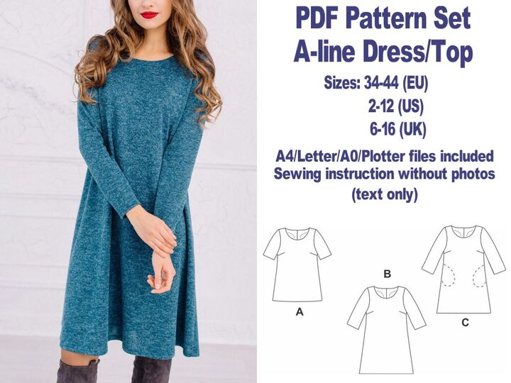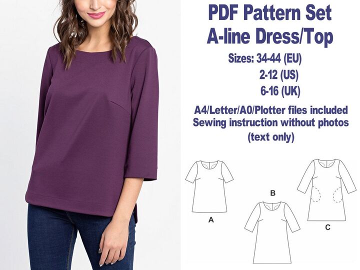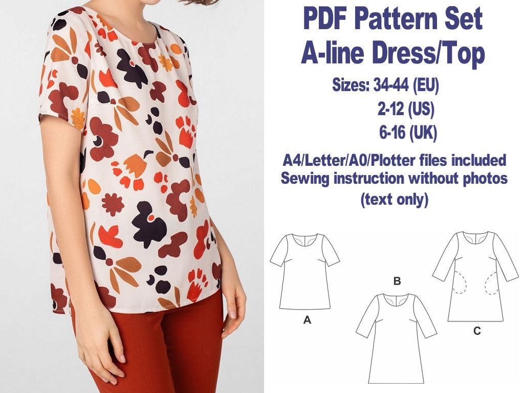 A-line Dress Pattern PDF Dress Pattern A-line Top Pattern Sewing Patterns