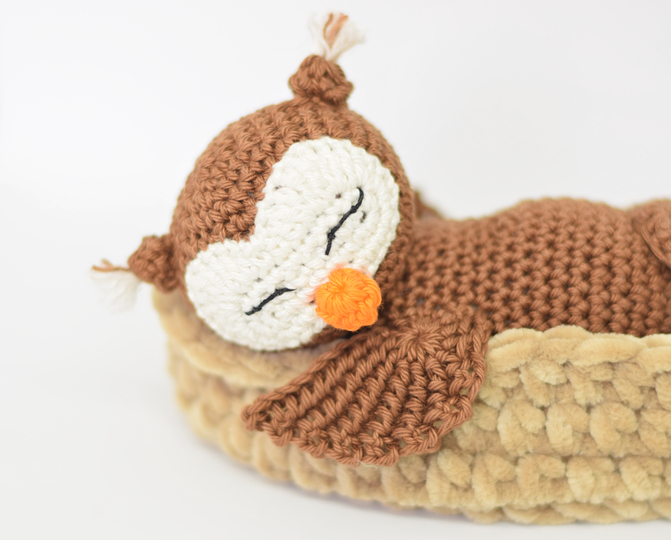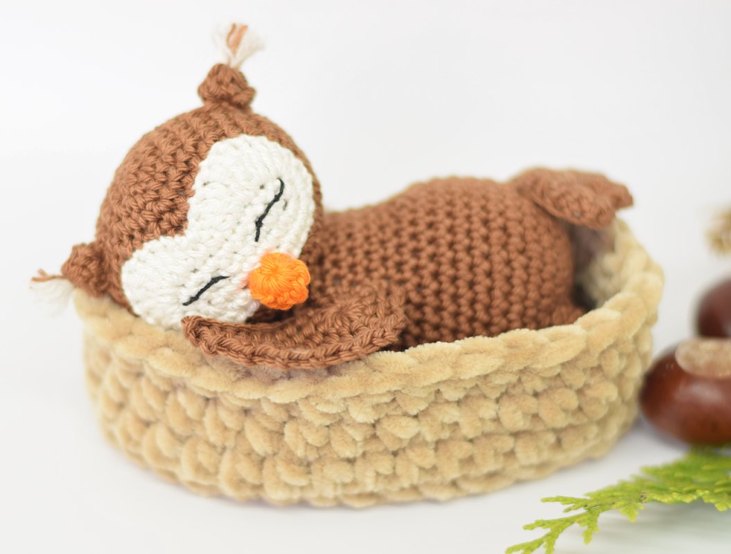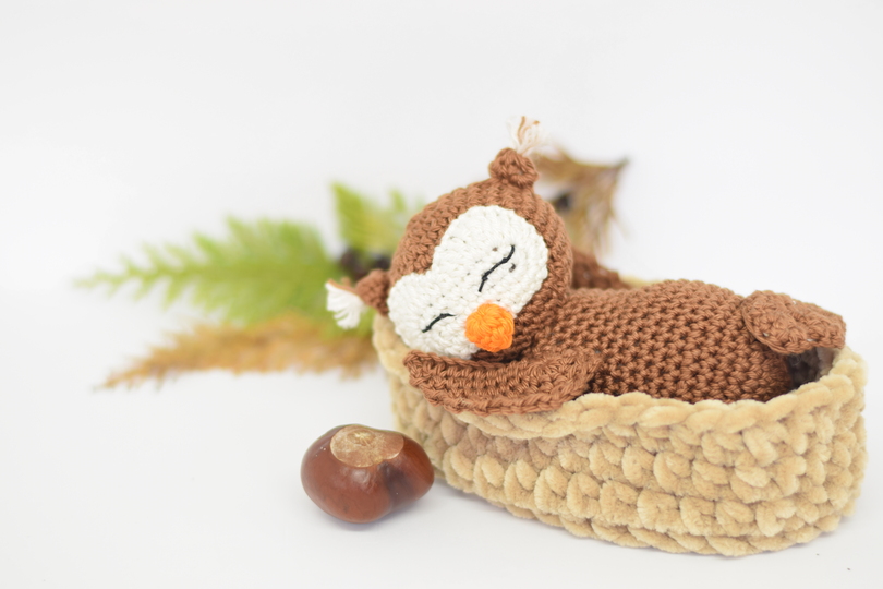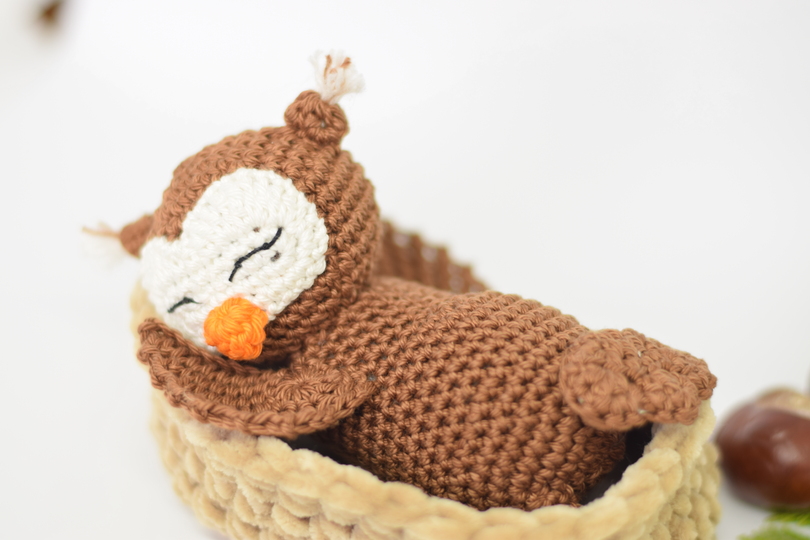 Diese Anleitung umfasst die Schritt-für-Schritt-Häkelanleitung mit vielen Bildern für die schlalfende Haekelicious Eule inkl. dem Nestchen.