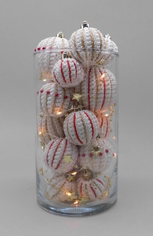 die Häkelbeschreibung der Kugeln findest Du auf Seite 9 in der Anleitung, die Fotos zu den Kugeln auf den Seiten 16-18.
