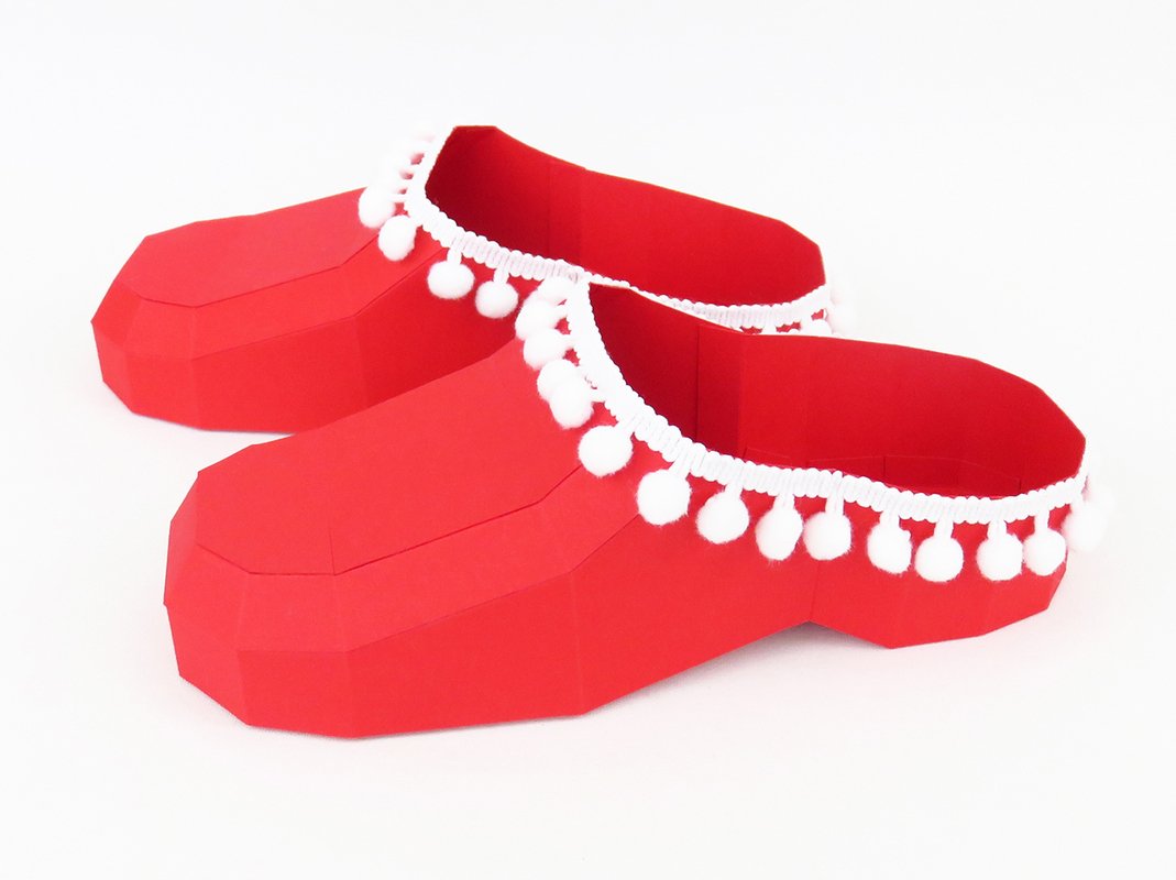 Wenn du jemanden mit einem Nikolausgeschenk überraschen möchtest, dann hast du hier ein ausgefallenes Behältnis dazu. Und wenn du ein Pärchen überraschen möchtest, dann passt diese Anleitung auch perfekt – hier gibt es nämlich Vorlagen für ein Schuhpaar, also für den linken und den rechten Schuh.