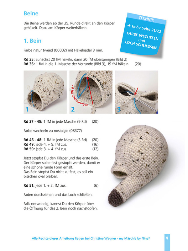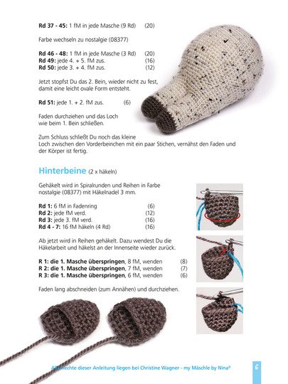 Die gehäkelten Modelle dürfen als Einzelstücke mit dem Hinweis „gehäkelt nach einer Anleitung von Christine Wagner - my Mäschle by Nina©“ oder dem Link zu dieser Anleitung verkauft werden. Die Massenproduktion ist nicht gestattet.