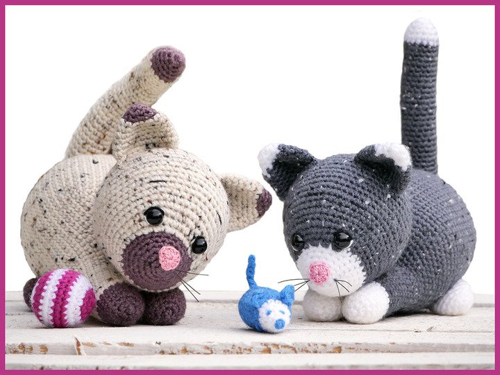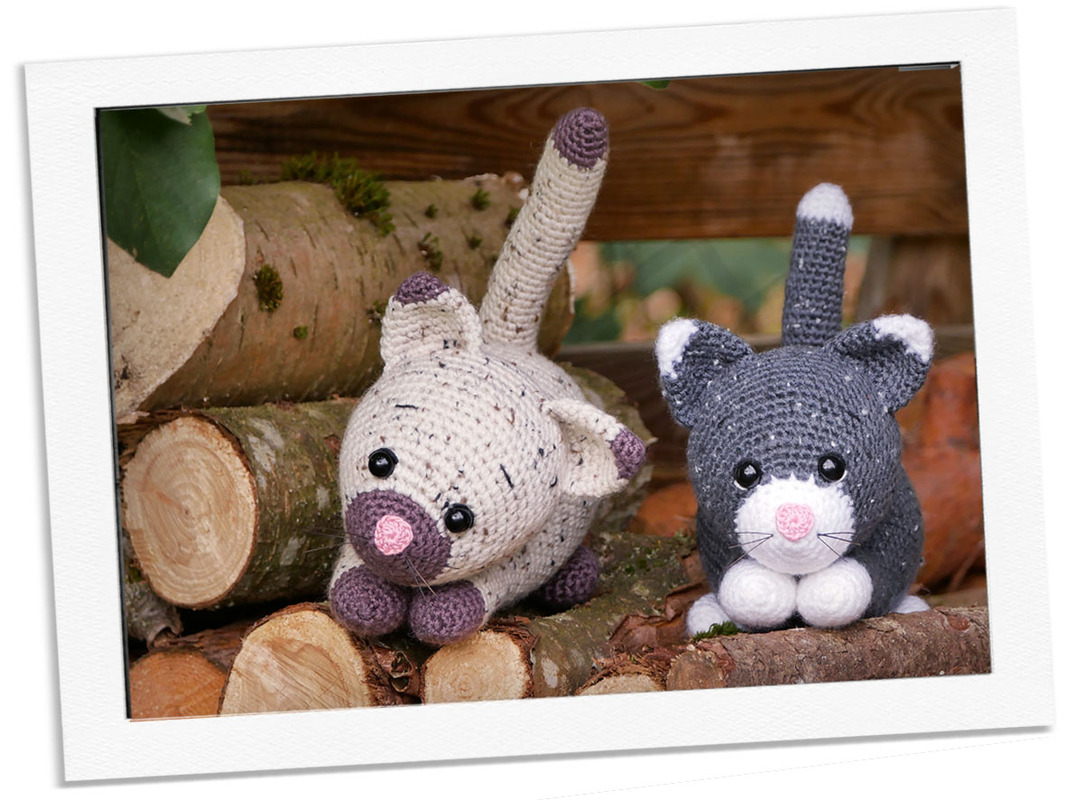 In meiner Anleitung für Lilly und Karli erkläre ich Dir Schritt für Schritt und mit vielen Bildern, wie Du diese beiden entzückenden Kätzchen inkl. kleinem Ball und Mäuschen häkeln kannst.