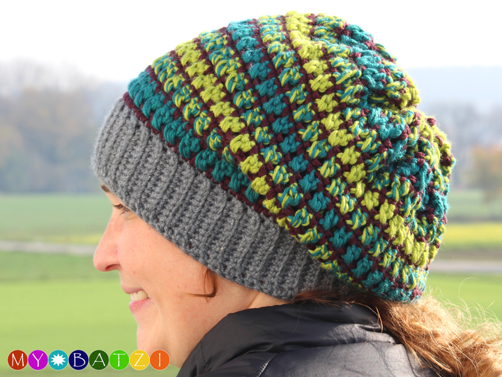 Die Anleitung enthält viele Bilder uns ausführliche Schritt-für-Schritt-Erklärungen. Die Beanie kann deshalb auch von Anfängern nachgerbeitet werden. Wenn du sie bunt häkelst, kannst du auch gut deine Wollreste verarbeiten.
