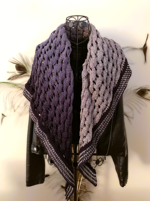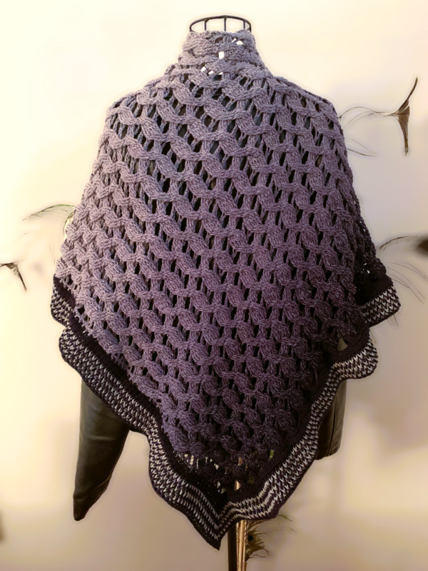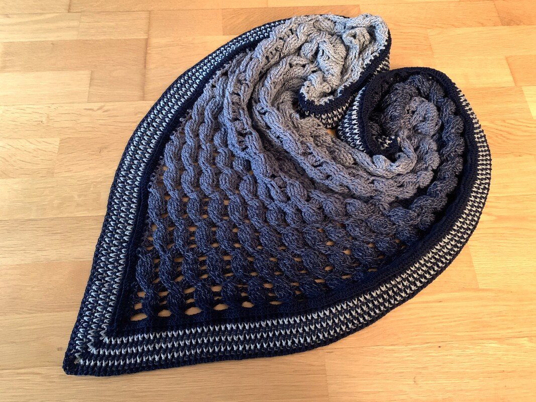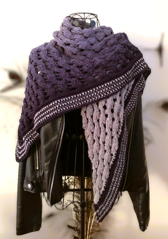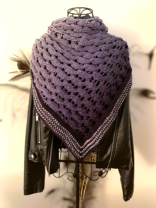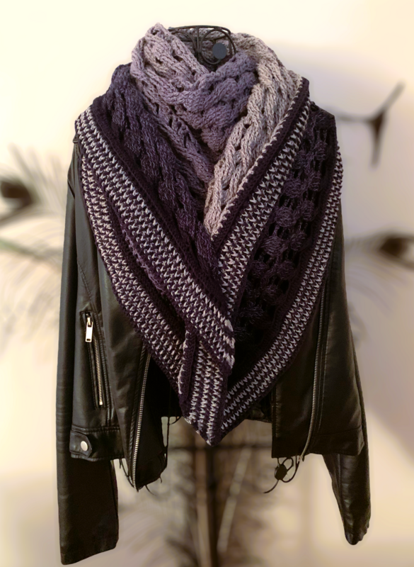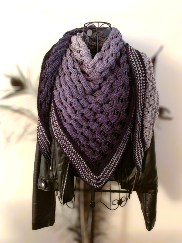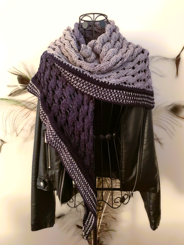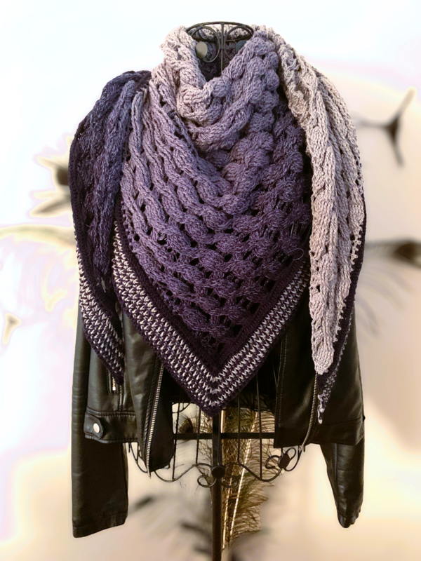 "Sinope" is a beautiful asymmetric triangular scarf, that can be crocheted in any desired size, as the rows repeat. The pattern consists of numerous braids, with loose chain stitch parts in between so that the scarf is cozy but not too thick.