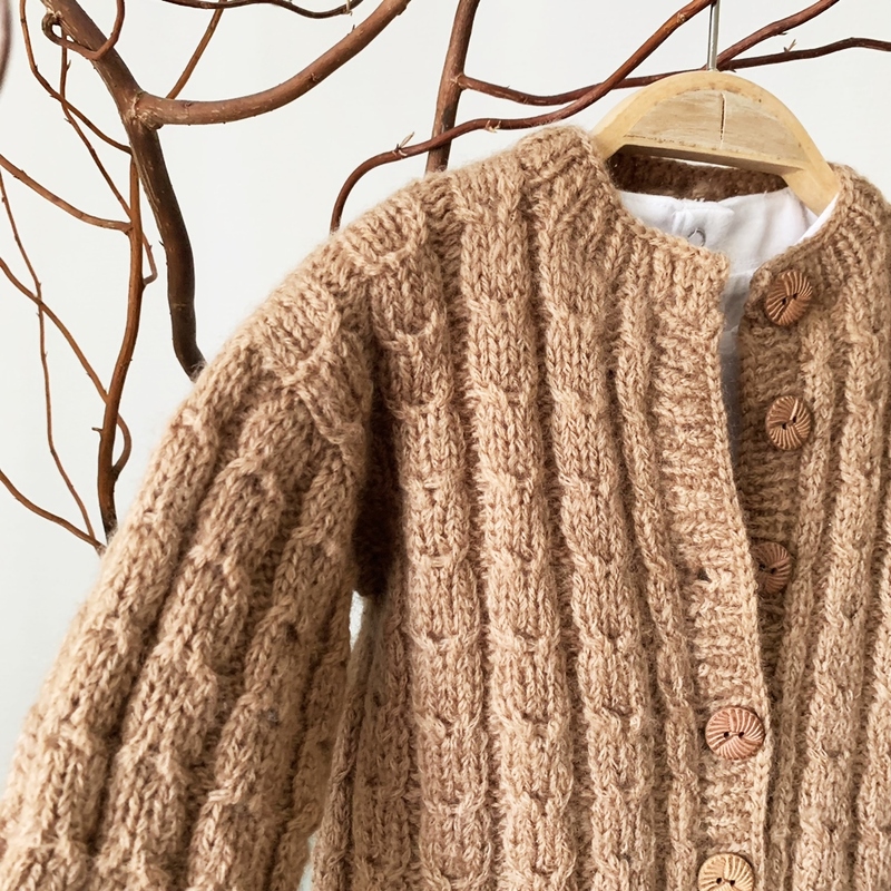 Diese Kinderjacke wird von unten nach oben gestrickt. Die Ärmel werden direkt an den Armausschnitten angestrickt damit so wenig wie nötige Nähte entstehen. Nun werden die Maschen entlang der Vorderkanten aufgenommen und die Blenden gestrickt. Jetzt fehlt noch das obere Halsbündchen. Hierfür musst du auch die Maschen aufnehmen und ein paar Reihen stricken. Jetzt müssen noch die Knöpfe angenäht werden und fertig ist dein Jäckchen!