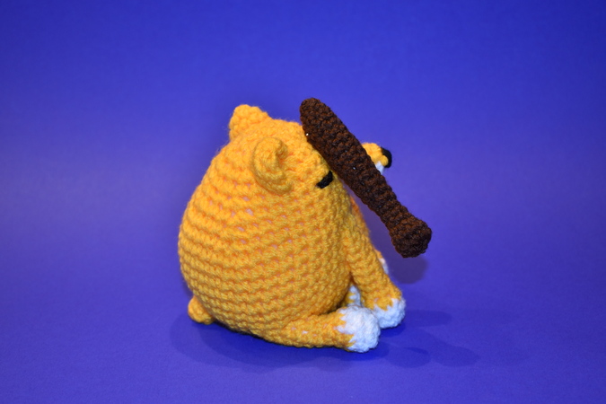 The PDF file contains detailed step-by-step instructions of the different parts of the famous meme "Bonk! Go to Horny Jail". It shows how to sew the Bonk Dog together. Also included are instructions for the mace.