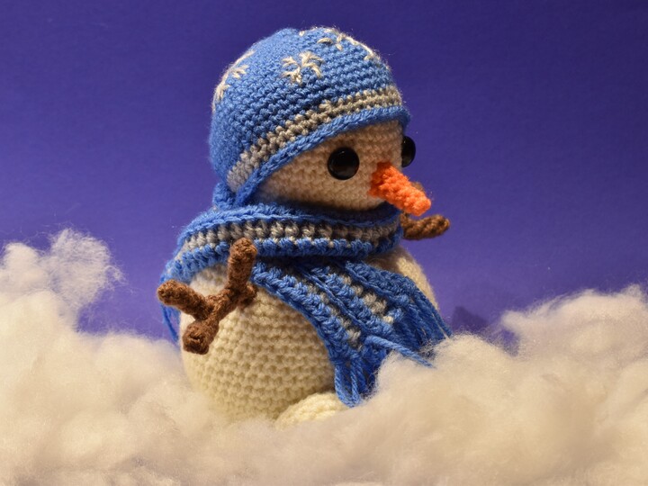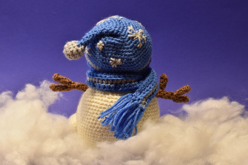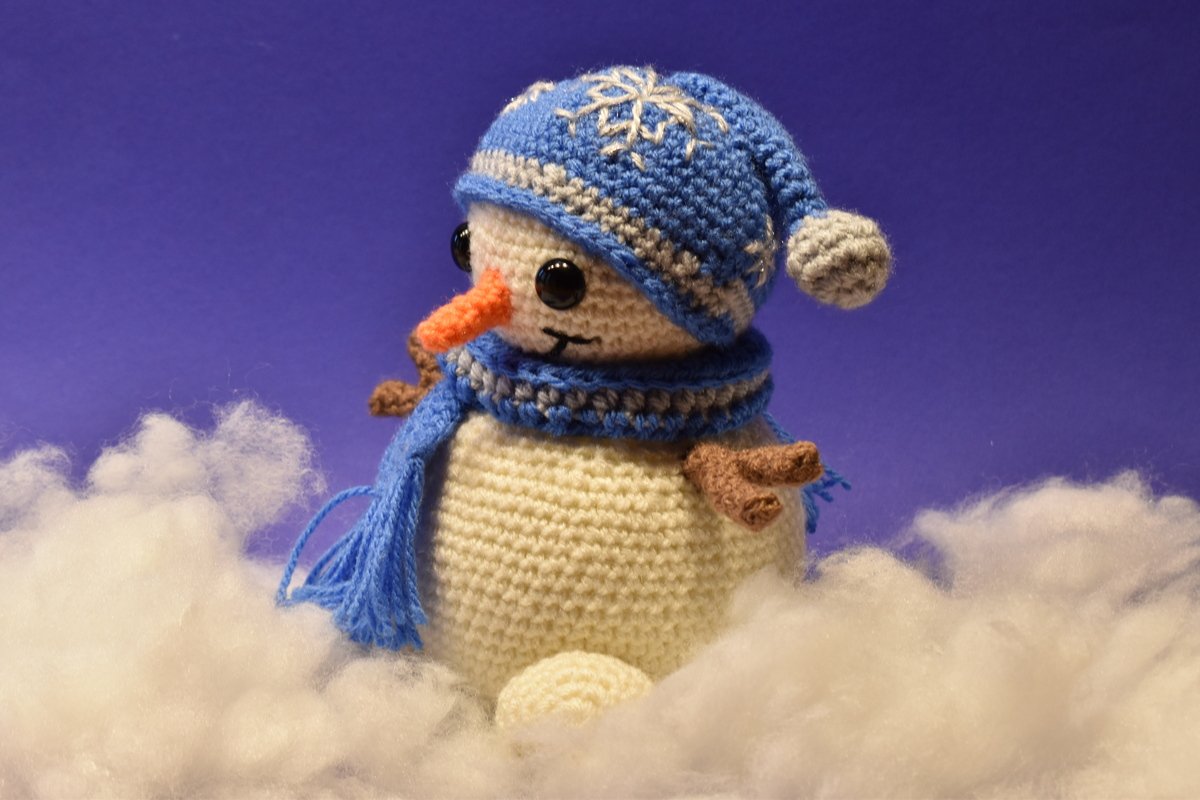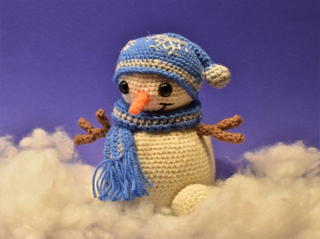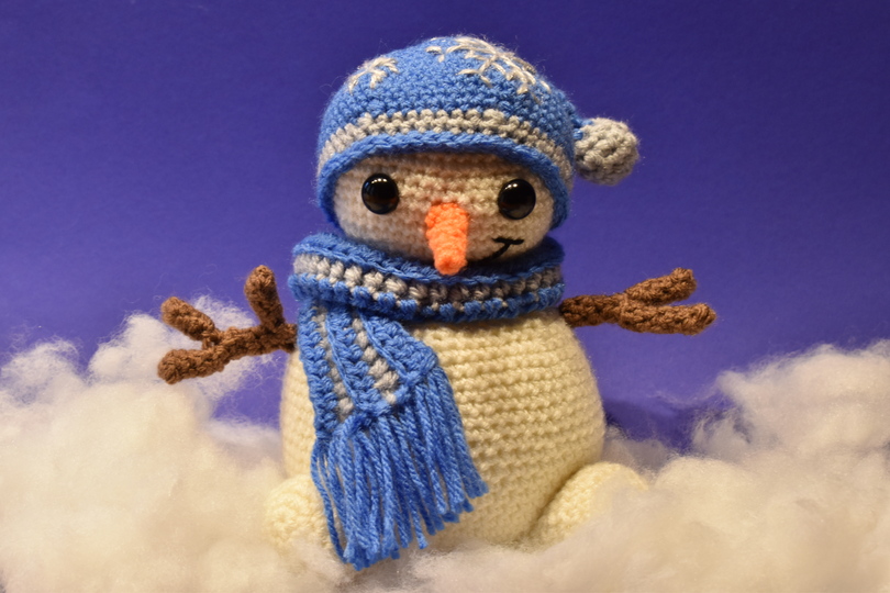 The PDF file contains detailed step-by-step instructions of the different parts of a snowman. It is shown how to sew it together.