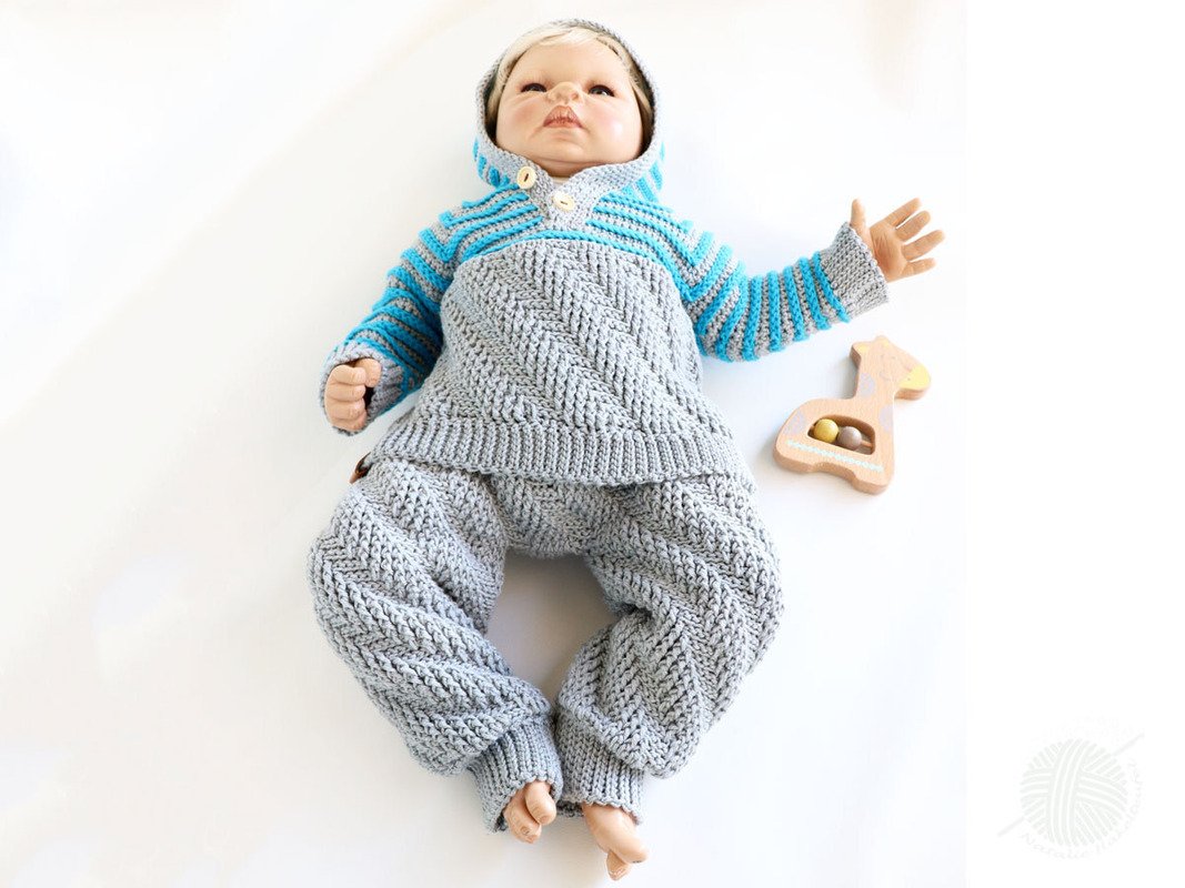 Two PDF crochet tutorials consisting of illustrated tutorials for crocheting baby and children's jumper "Leon", size 0 m.-5 y. and baby and children's trousers "Leon", size 0 m.-3 y. These are two crochet tutorials, not the finished products! These crochet patterns include a detailed description and several photos (over 50-70 photos each).