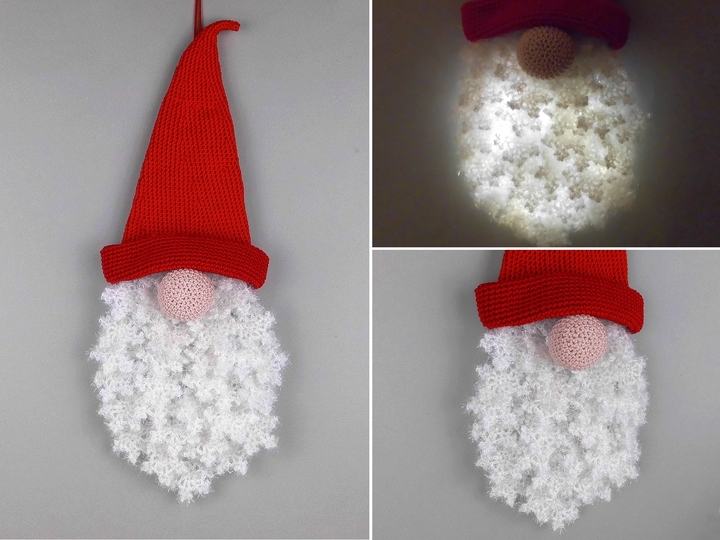 The snowflakes are crocheted from sponge yarn - through the short, shiny fringes of the yarn, the beard sparkles and glitters as if it were made of freshly fallen snow.