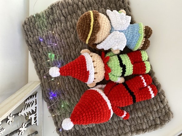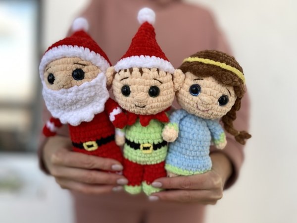 This Christmas Santa, Elf and Angel PDF pattern is written in English using US crochet terms.