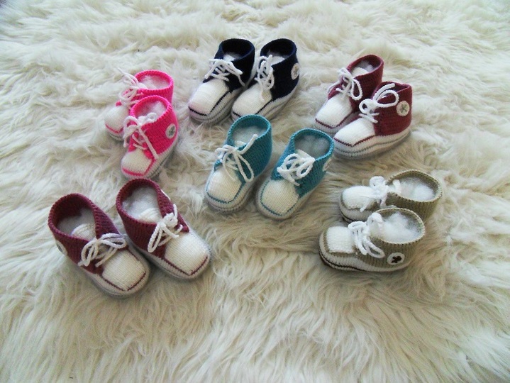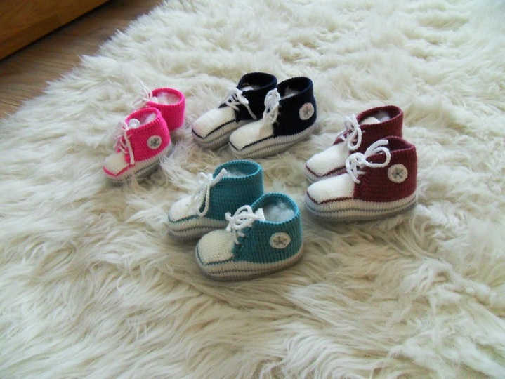Diese süßen Baby Turnschuhe kannst du in vier Größen arbeiten. Die kleinsten sind ca. 8 cm, dann