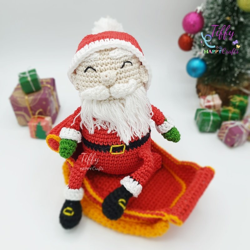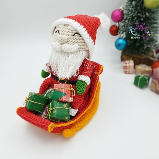 The little cool Santa Claus with sleigh is easy to follow with many photos to help you by working. But you must know the basic crochet stitches, this pattern does not include any crochet lessons.