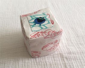 The box and the cards for the pictures are sewn from cotton fabrics. For the pictures, you can also use jersey fabrics, as these can be reinforced with fusible interfacing.