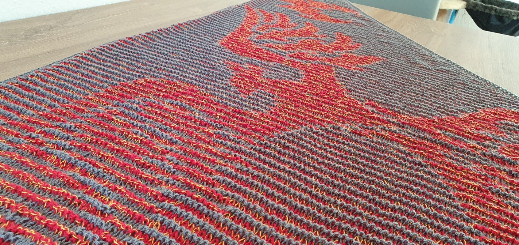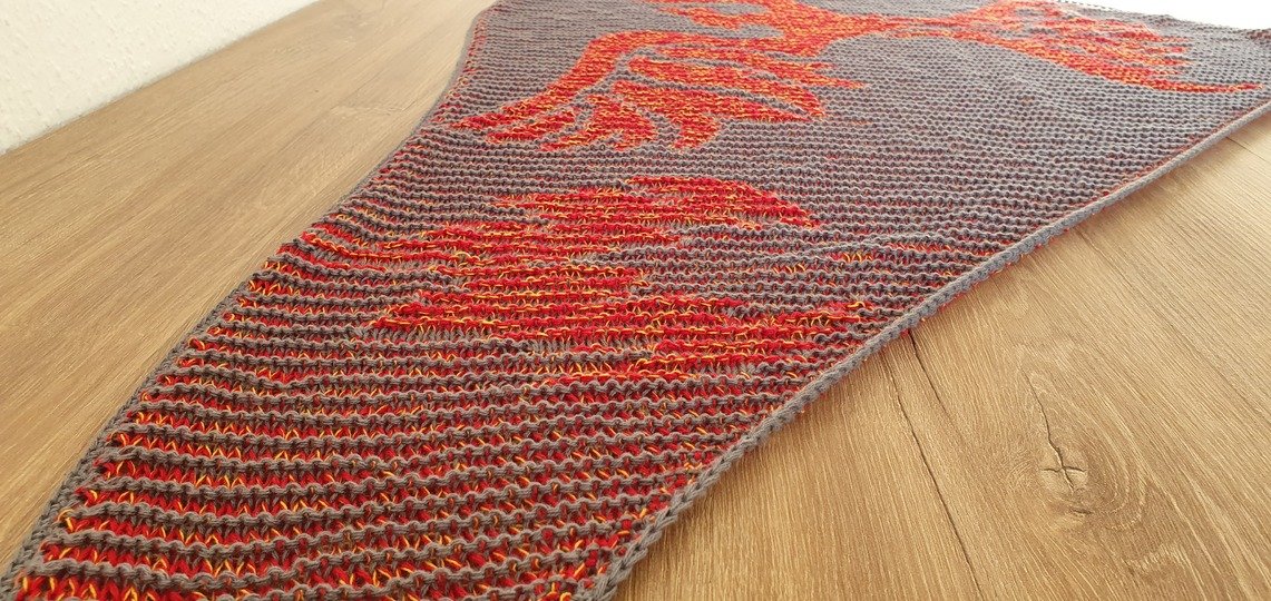 This pattern guides you step by step through creating a unique motif shawl, using the technique of shadow or illusion knitting. With this special method, the motif only becomes visible when viewed from the side – a striking effect with real wow-factor!