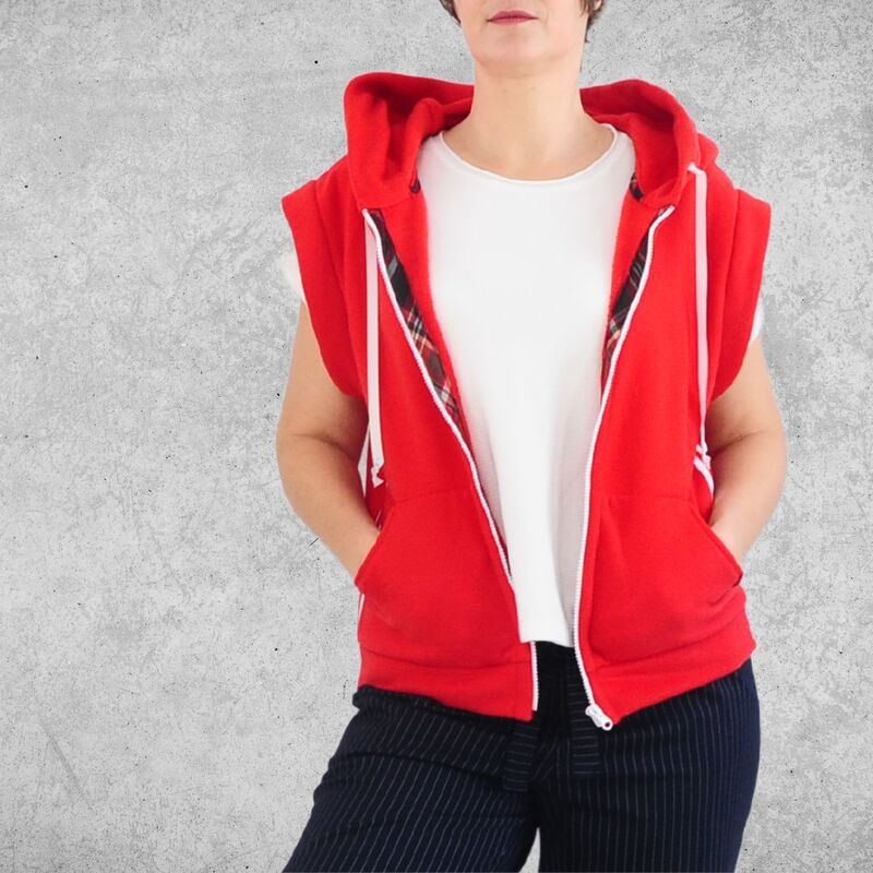 Waistcoat or jacket? With the Winnie jacket you can sew a super cool jumper with hood, sleeveless or long sleeved.