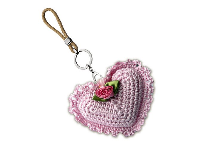 Die umfangreiche, reichlich bebilderte PDF-Häkelanleitung zum Häkeln von Schlüsselanhänger Herz "Rose" zum Dekorieren des Hauses oder als Mitbringsel für die Freunde. Das Herz kann man auch als Schlüsselanhänger benutzen.