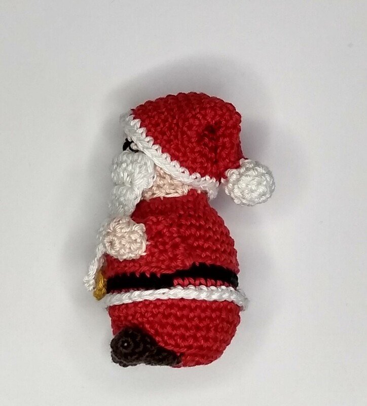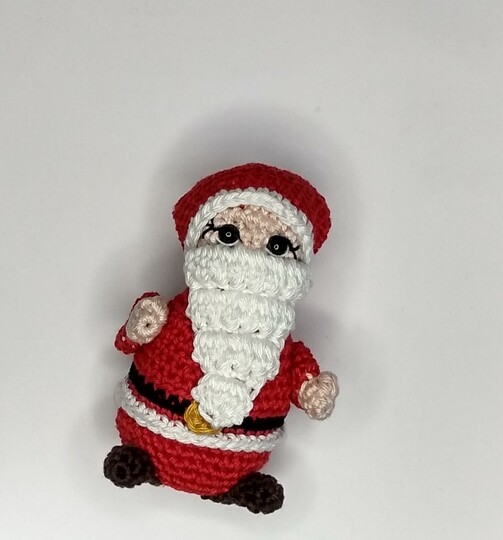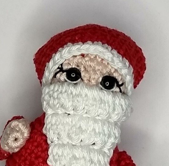Dimensions: around 6cm long and wide and 9 cm tall. (If you‘re using a crochet hook in a different size, the Santa Claus will be bigger or smaller.)
