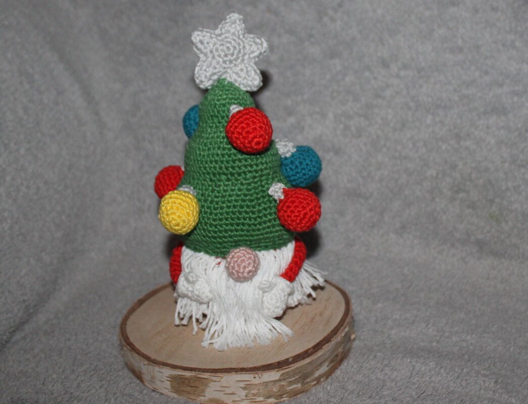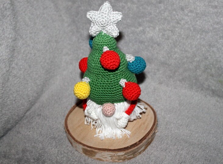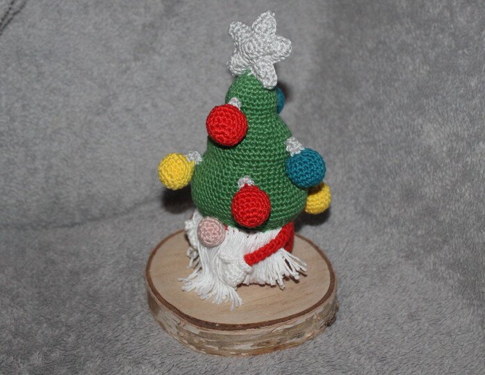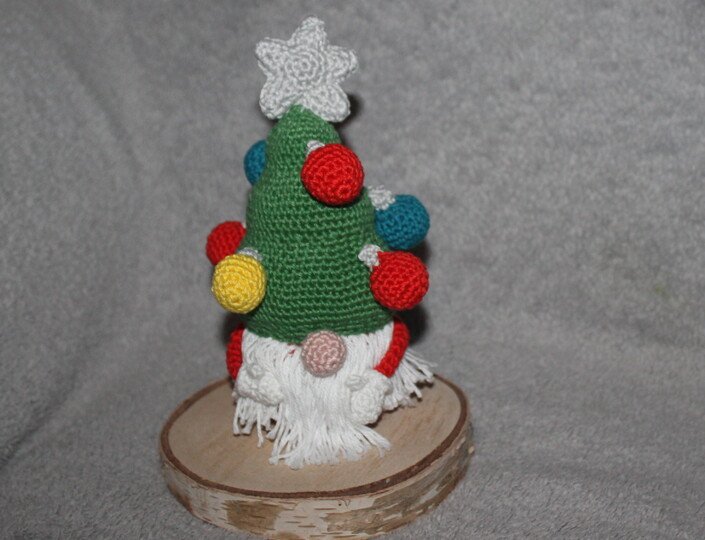 The crochet gnome will be about 18 cm / 7 inches tall.