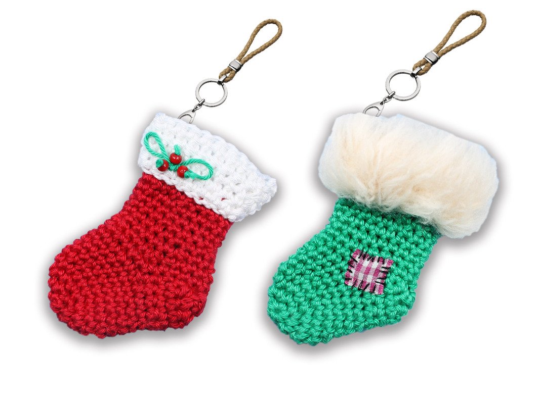 PDF crochet pattern for crocheting the "christmas stocking" pendant to decorate the house or as a present for friends. The sock (stocking) can also be used as a keychain. Also suitable as an advent calendar!