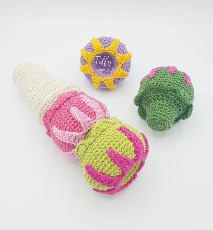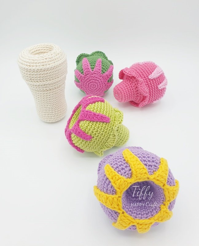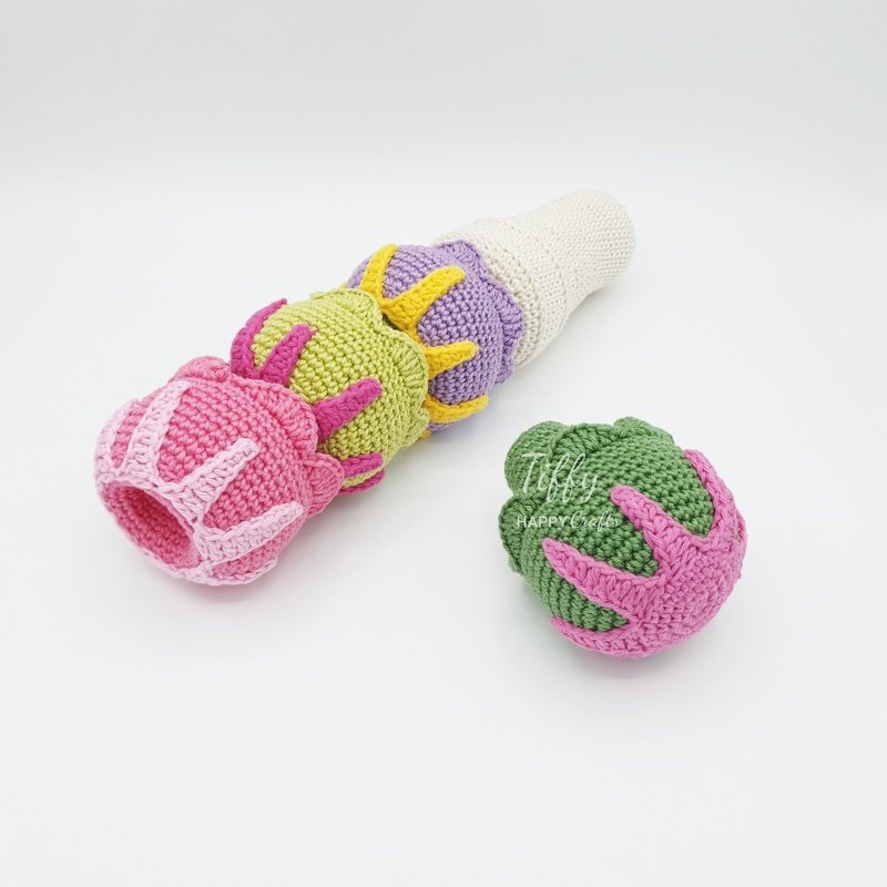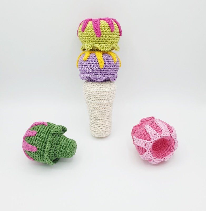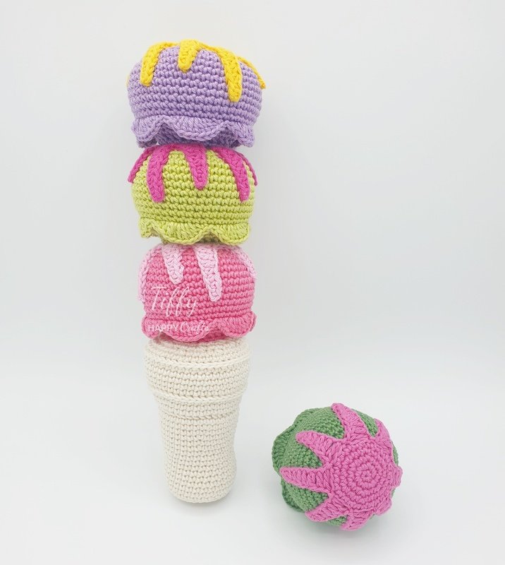 This cute ICE CREAM stacking toy is easy to follow with a lot of photos. You can choose any color you like. Mix and match according to your imagination, whether made in plain colors or patterned.