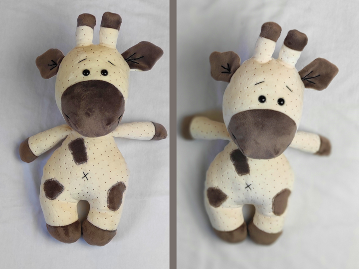 Fertig genäht ist die Giraffe etwa 36 cm hoch.