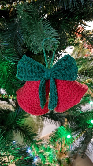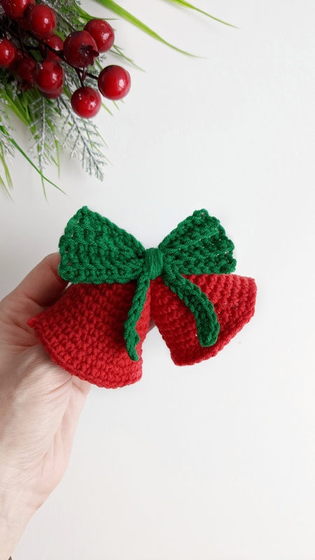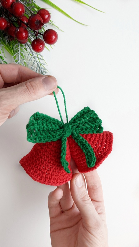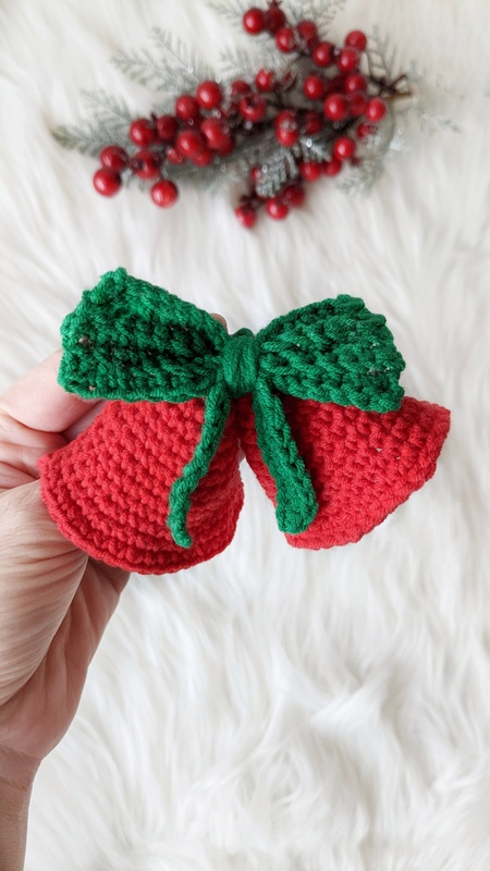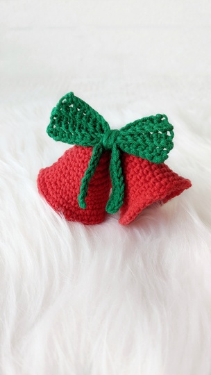 This Christmas bells ornament is an easy to crochet pattern. It's a quick and easy project for your holiday season! These cute little bells would look lovely on the Christmas Tree. Perfect for home decor, wreaths, and more! It’s a lovely, simple ornament for any Christmas tree.