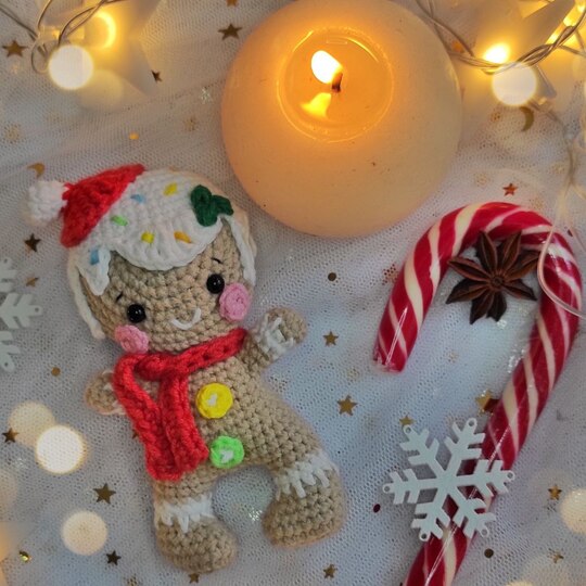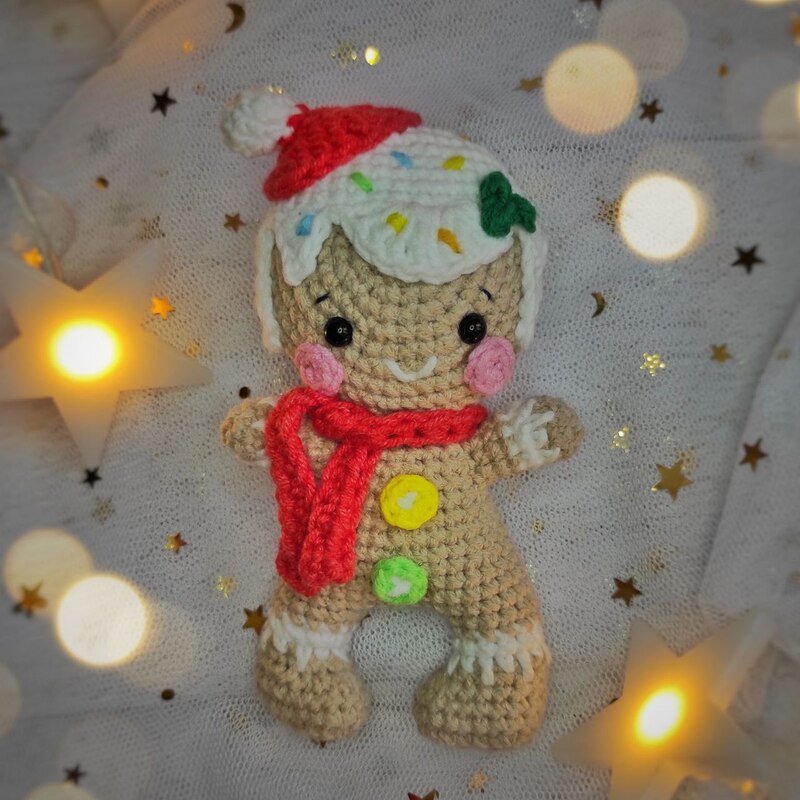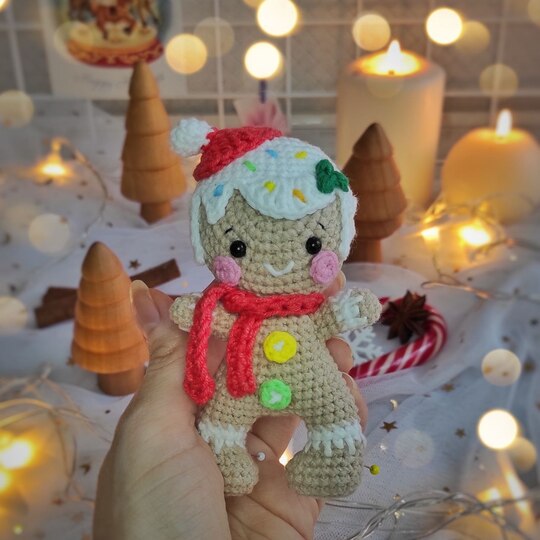 This is the original pattern of Biscuit – the Gingerbread Boy designed by Yevheniia Romanchuk (LovenikaDesign). This pattern is written in US terminology.