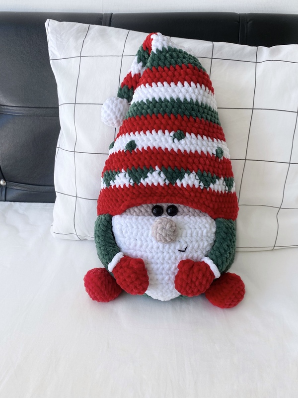 Easy crochet pattern of the cute plush Gnome pillow for Christmas home decor (PDF file).
