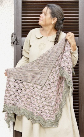 Beachten: Die Borte des Tuches wird am Ende in der Kontrastfarbe gestrickt, dass sollte man, bei der Farbwahl bedenken..