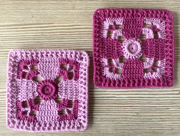 Das fertige Grannymuster "Durchblick" bei 8 RUNDEN eine Seitenlänge von 17 cm
