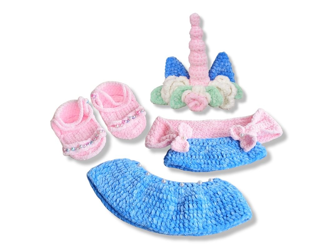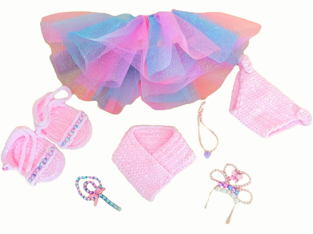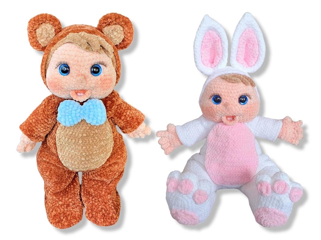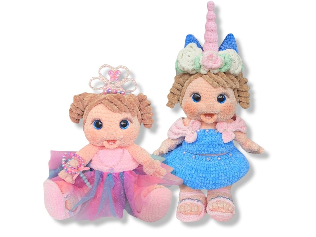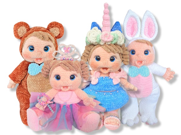 When purchasing this product you will receive four detailed crochet patterns in PDF format, not the finished amigurumi. In the instructions I describe step by step how to crochet the outfits. The instructions have in total 68 pages and are provided with many colorful pictures. The patterns does NOT include a basic crochet course. After the purchase you can download the PDFs in two languages.