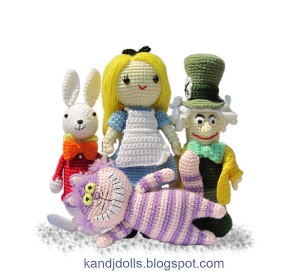 This is a collection of 4 patterns: Alice in Wonderland, the Cheshire Cat, the White Rabbit and the Mad Hatter. Separate English and German tutorials are included.