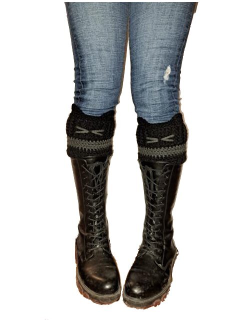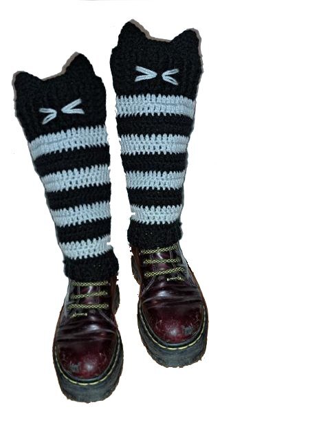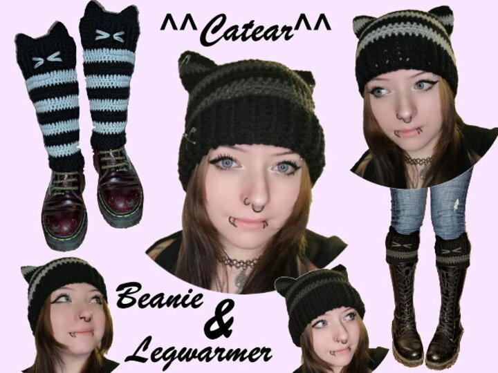 With this crochet pattern you can crochet this cute cat ear hood (with short or folded brim) and these cute leg warmers (short or long) in your favorite colors.