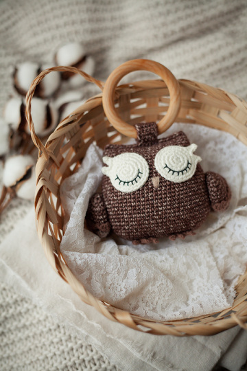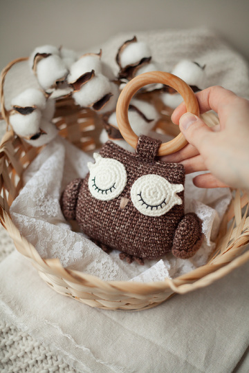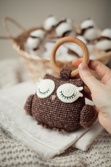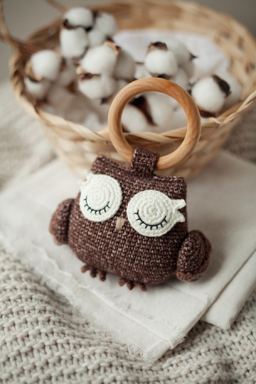 Using this owl baby rattle crochet pattern in English you yourself can crochet a rattle for your baby or grandchildren.