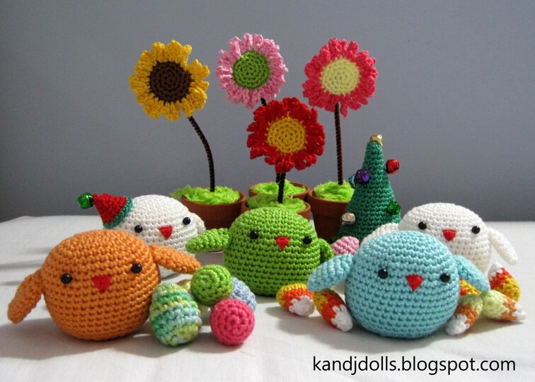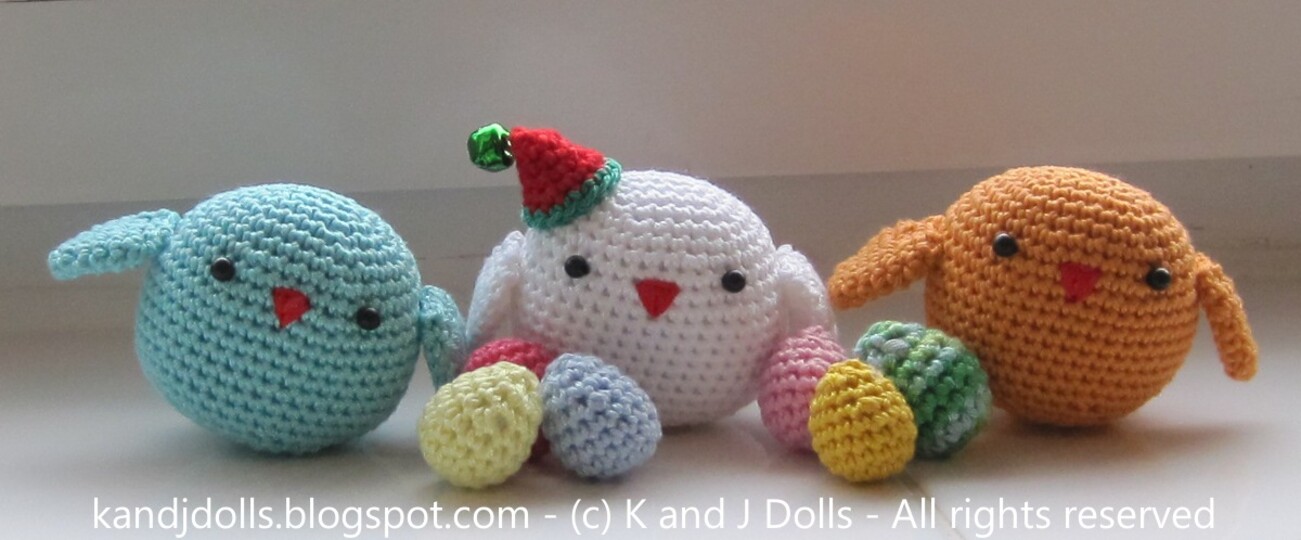 A pattern for all four seasons. The Green Bird is for the spring. She comes with a pattern for little easter eggs. The Blue Bird is for the Summer and has a pattern for colorful flowers. The Orange Bird stands for Autumn and has a delicious candy corn pattern. The White Bird is for the winter. She comes with a cute Santa Hat and Christmas Tree.