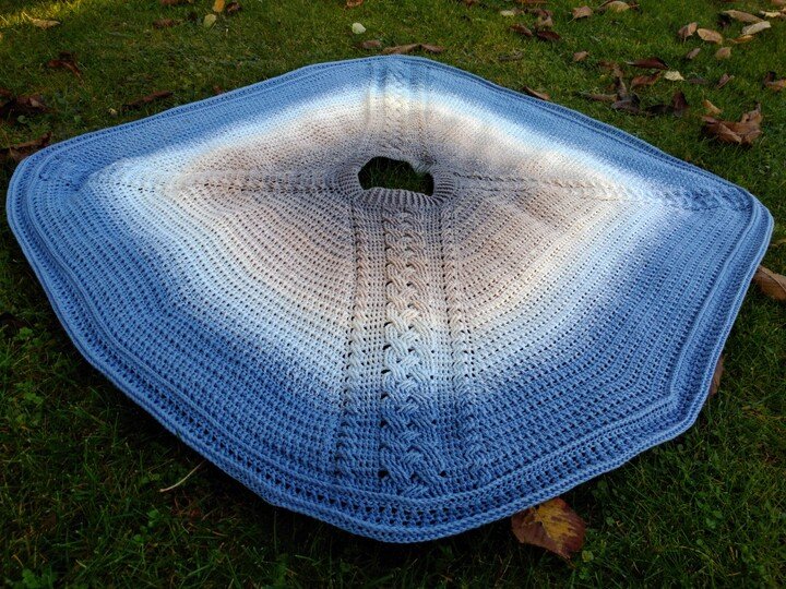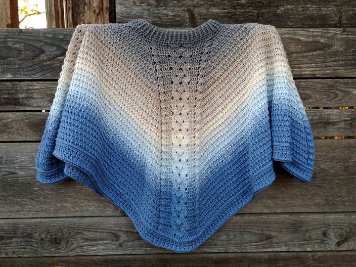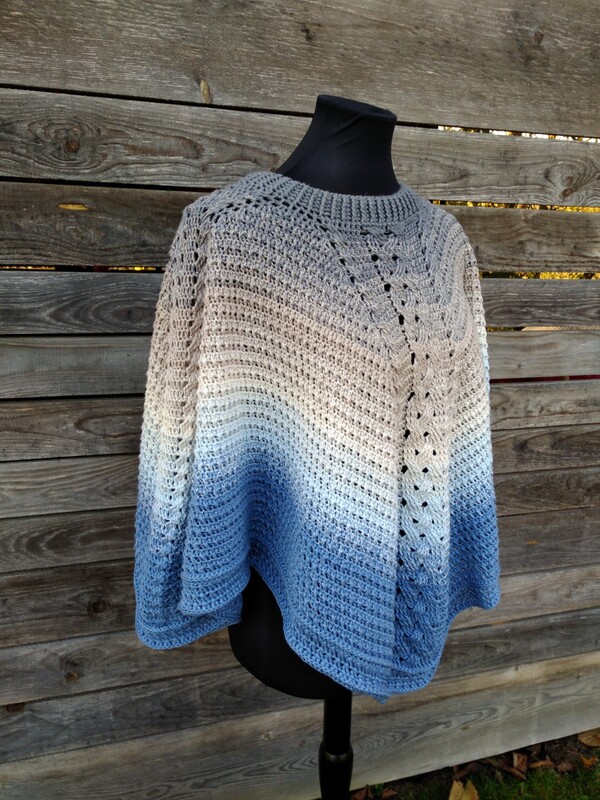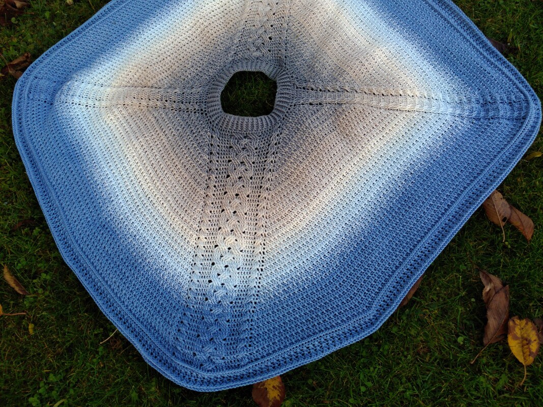 Du bekommst hier eine Anleitung für einen Poncho mit verschiedenen Verzopfungen.