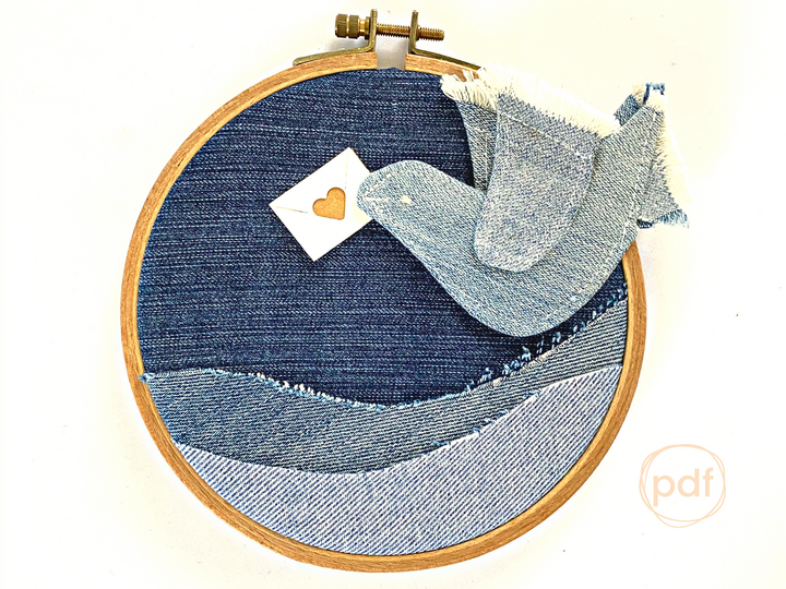 You will learn to make the letter, create the jeans landscape in the hoop and last but not least sew a bird. A easy sewing project for beginners and advanced.