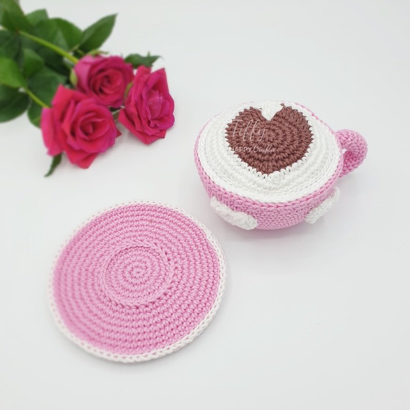 Here is an easy-to-follow Crochet Pattern for the Hot Cacoa With Heart Latte Art | Valentine's Day Heart Cup with Cacoa Latte Art.