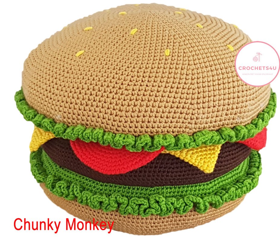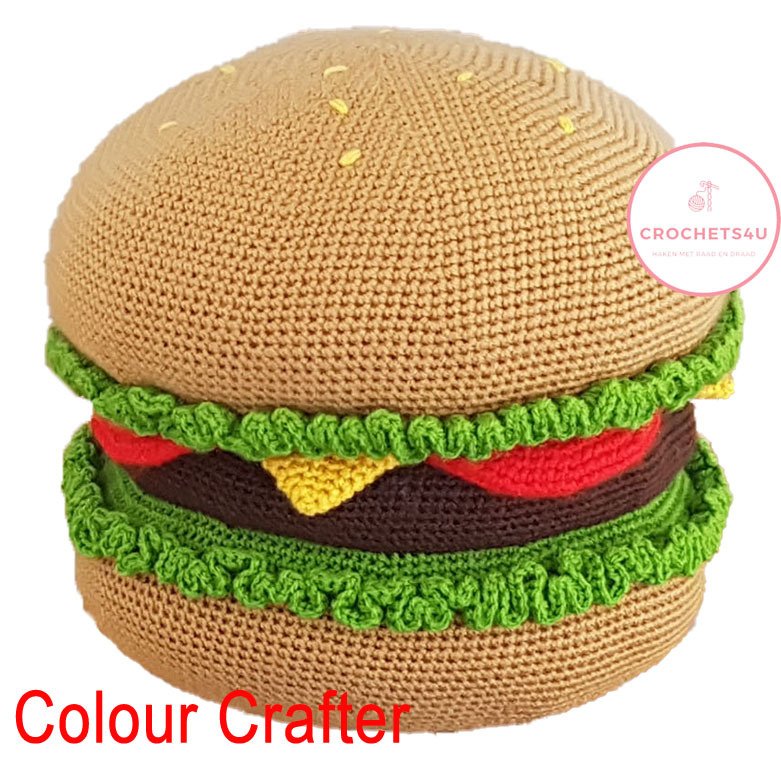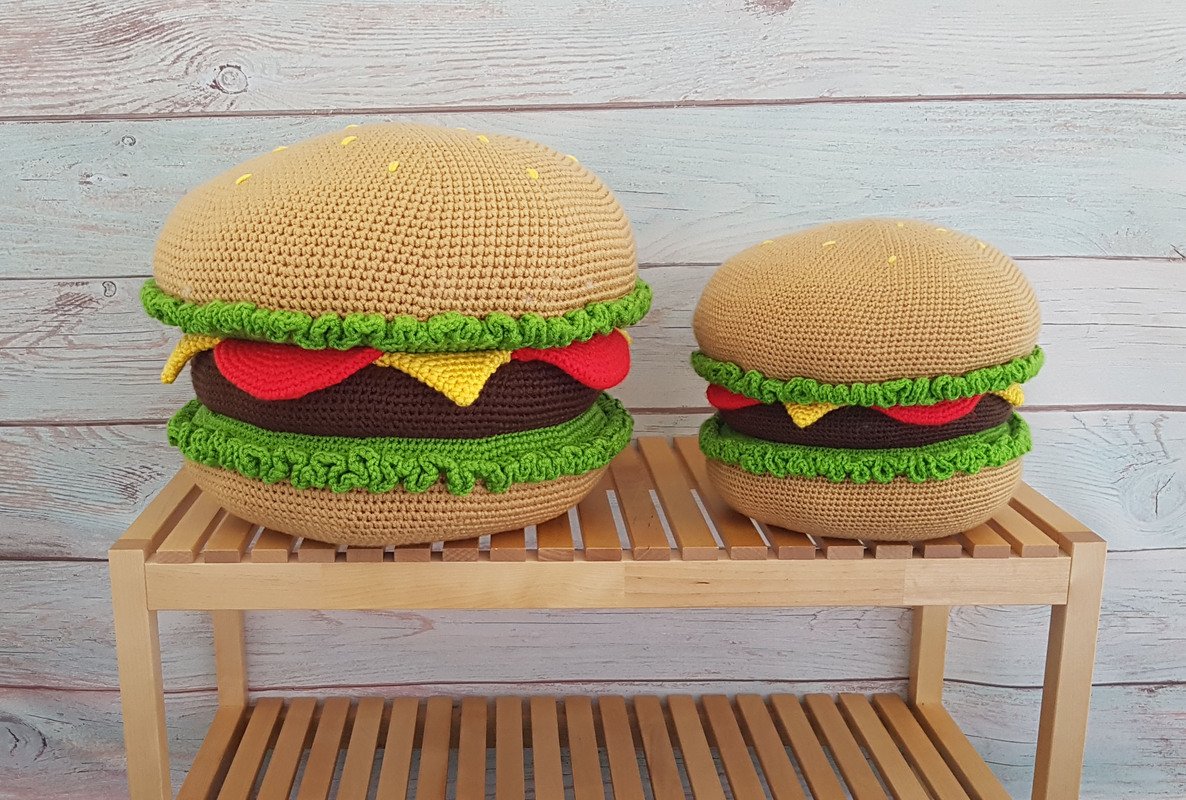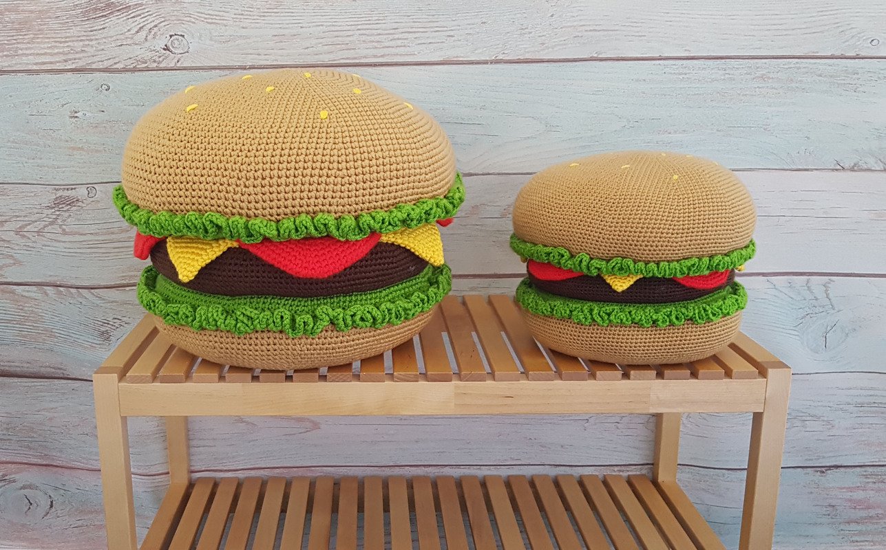 With this pattern you can crochet a unique hamburger shaped pillow.
