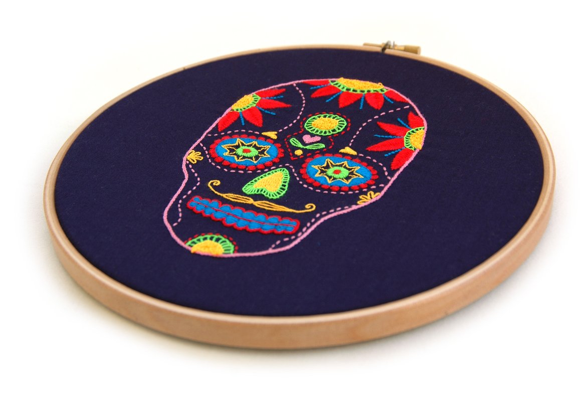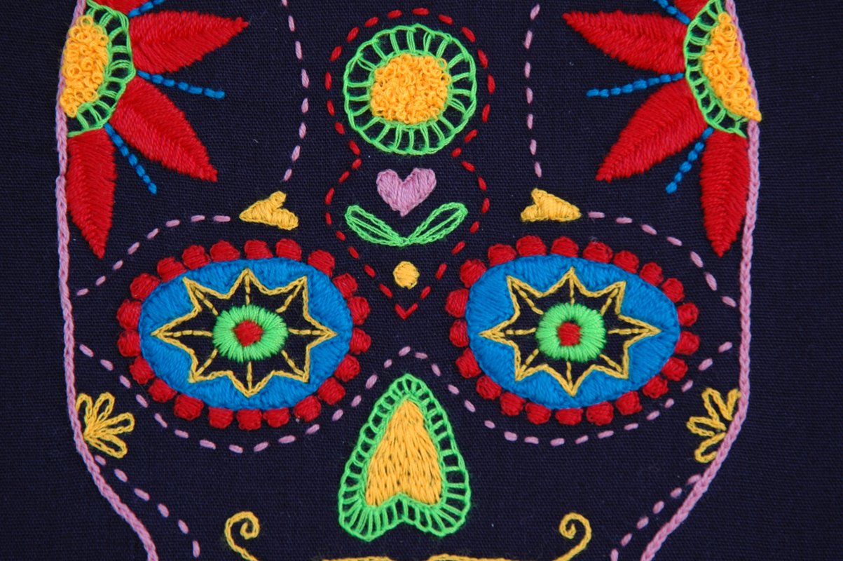 PDF Tutorial for this beautiful handmade embroidery. Textile art with mexican skull.