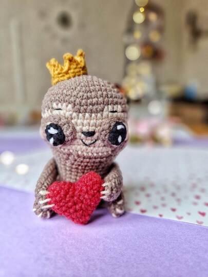 The pattern consists of 11 pages with detailed instructions and 30 step-by-step pictures to guide you through the process. The pattern is written in English and is suitable for crocheters with intermediate skills. With this pattern, you will be able to create your own adorable sloth with heart and tulip amigurumi.