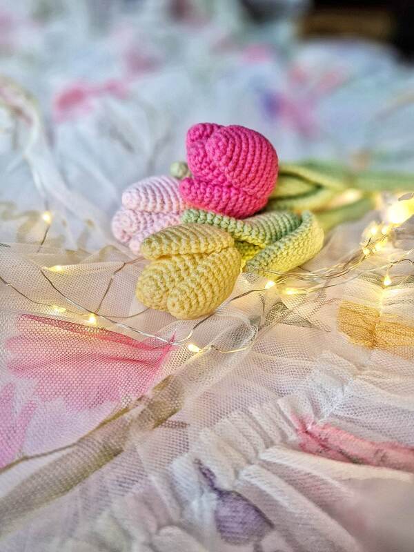 Crochet tulips are a beautiful and unique way to add a touch of Spring to your home decor or to give as a gift. They are made by crocheting yarn using a hook to create the petals and stem of the tulip. The tulips can be made in a variety of colors, and can be arranged in a bouquet or displayed individually. They can be used for a table centerpiece, room decor or as a gift. They are a great way to learn new crochet techniques and skills as well.